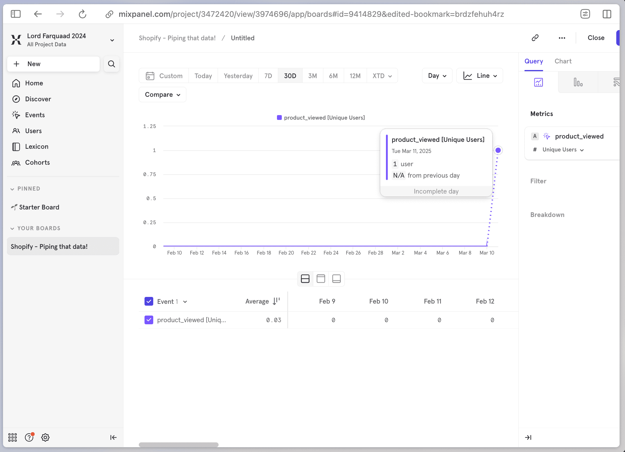 7. Verify data is flowing into your Mixpanel dashboard and enjoy tracking custom conversions in real time! 🎉