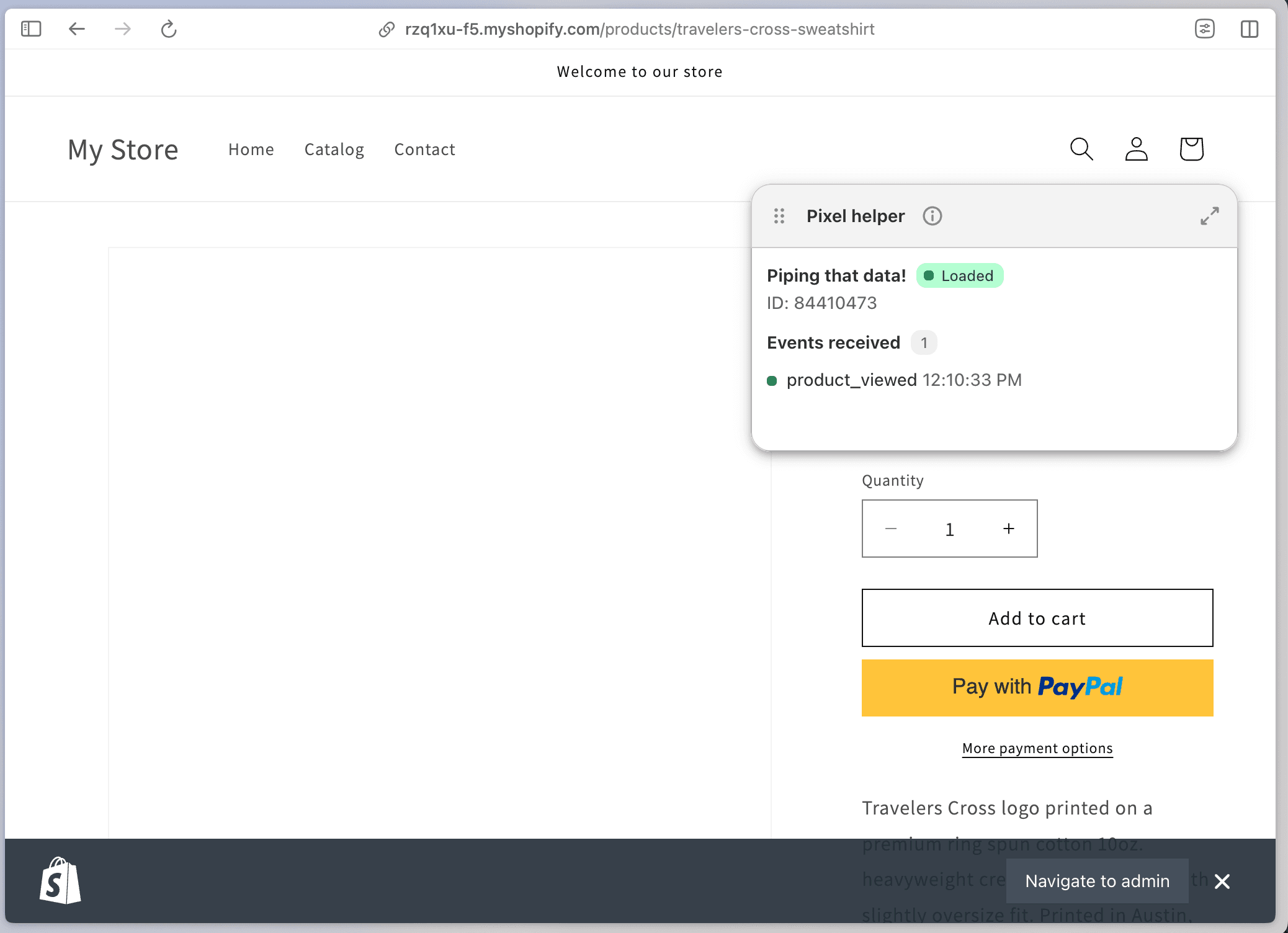 4. Click “Test” to confirm the Shopify Web Pixel API is connected (next, we’ll confirm Mixpanel is receiving those events from Shopify)